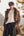 Abrigo de invierno largo de piel sintética con tirantes blancos y negros para hombre