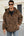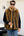 Abrigo de invierno de piel sintética de leopardo café para hombre con bolsillos