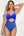 Elegante traje de baño de una pieza de cintura alta con corte de puntos azules y blancos
