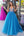 Princesa Azul Brillante Vestido de Fiesta Largo de Tul de Lentejuelas con Cuello en V