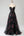 Tirantes de espagueti de línea A negra Flores Volantes Tul Vestido de fiesta largo con abertura