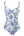 Azul impreso de cintura alta de una pieza traje de baño con flores
