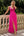 Vestido de fiesta largo con volantes con cuello en V de color rosa intenso