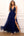 Vestido de fiesta largo corsé azul marino brillante con abertura