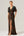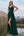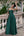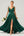 Vestido de dama de honor con cuello de satén verde oscuro con abertura