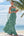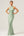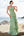 Vestido largo de sirena verde claro con hombros descubiertos y abertura de volantes