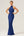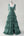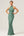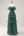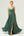 Vestido largo de dama de honor sirena verde pino con cuello halter con abertura