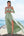 Vestido de dama de honor con corsé tirantes y lazo en tono salvia