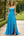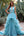 Vestido de fiesta largo halter azul de una línea con volantes