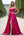 Fucsia A Line Vestido de Fiesta Largo Fruncido Con Escote En V Profundo Con Abertura