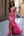 Vestido de fiesta largo sirena de cuello cuadrado fucsia con abertura
