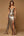 Vestido de fiesta de satén metálico con tirantes finos de vaina dorada