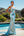 Vestido de fiesta floral blanco sirena blanco azul