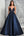 Tirantes de espagueti azul marino Un vestido de fiesta largo de encaje