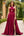 Burdeos Línea A con volantes profundos con cuello en V Vestido de fiesta largo de satén con abertura