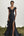 Vestido de fiesta negro con volantes de satén con cuello en V