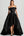 Vestido de fiesta de organza de satén con escote en V y cuello en V negro