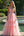 Vestido de fiesta largo de encaje rosa con tirantes finos de una línea