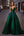 Vestido largo de fiesta de tul verde oscuro con apliques de encaje