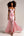 Vestido de fiesta rosa satinado con cuentas de sirena