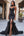 Vestido de gala militar largo de satén con escote en V sirena negro con abertura