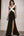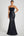 Elegante vestido de fiesta largo con tirantes negros con tirantes ajustados y volantes con bufanda