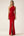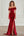 Elegante vestido de fiesta largo de tul fruncido de novia de color rojo una línea con abertura