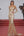 Vestido largo de gala con cinturón y cuello redondo dorado de satén metálico