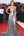 Vestido de gala con escote en V y escote en V plisado azul con manga larga