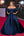 Vestido de gala azul marino con hombros descubiertos y mangas abullonadas