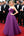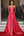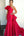 Un vestido de gala largo de satén sin tirantes rojo y rosa de una línea