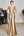 Vestido de gala de lentejuelas con hombros descubiertos champán y manga larga