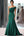 Vestido de gala de lentejuelas sirena con hombros fríos en verde oscuro
