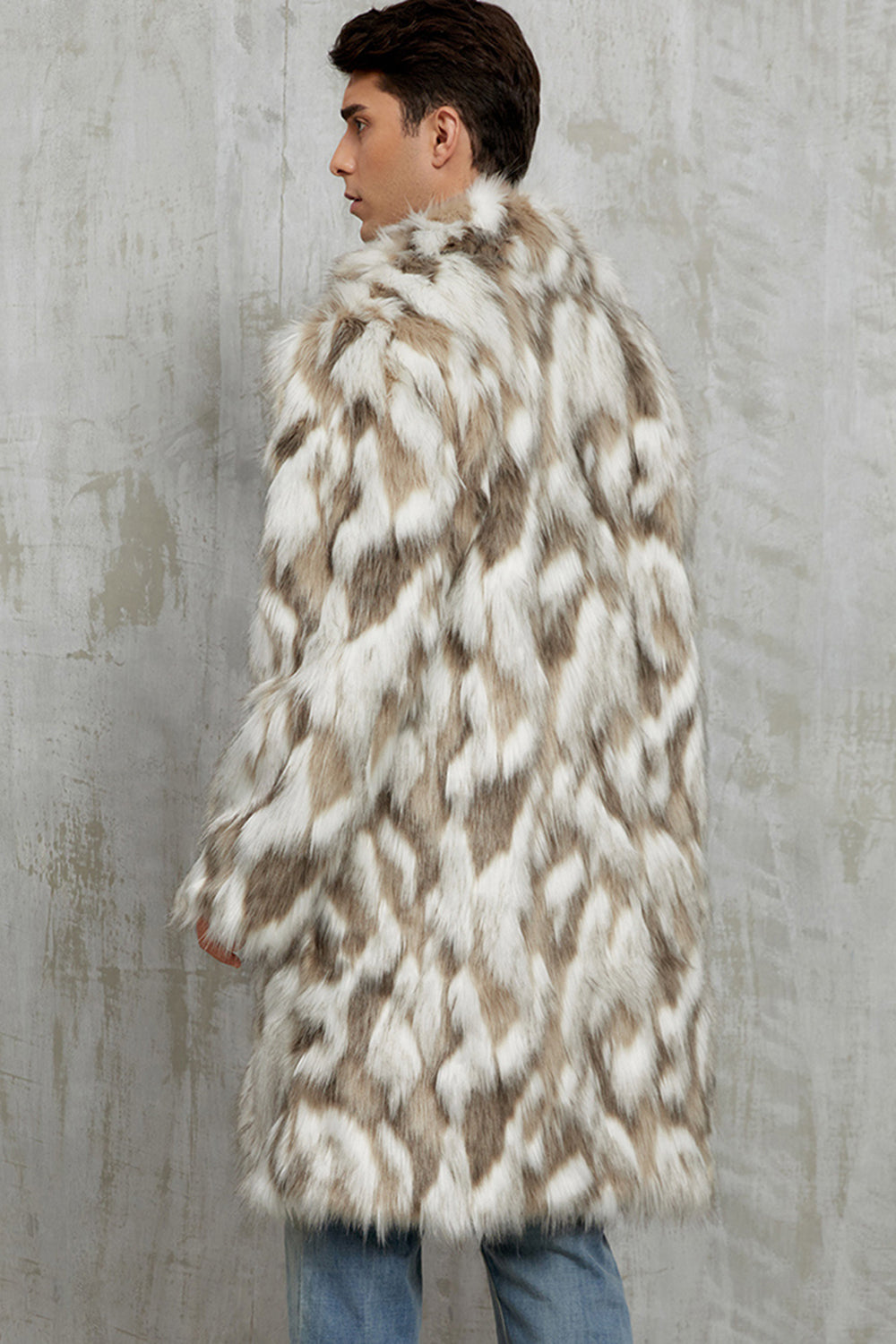 Abrigo largo de invierno para hombre con solapa con muescas de piel sintética gris