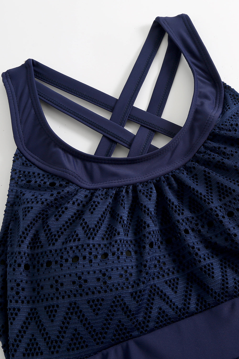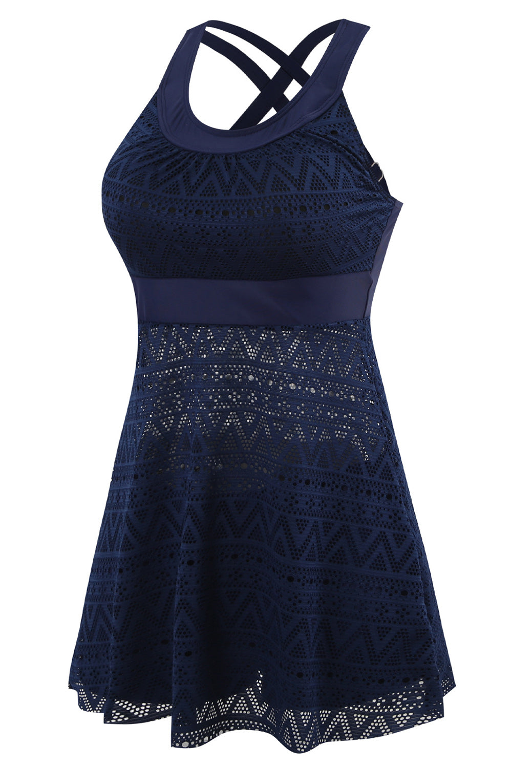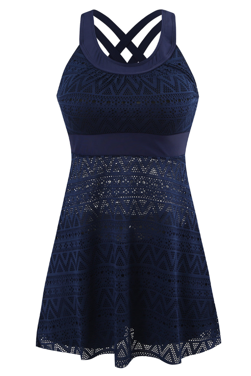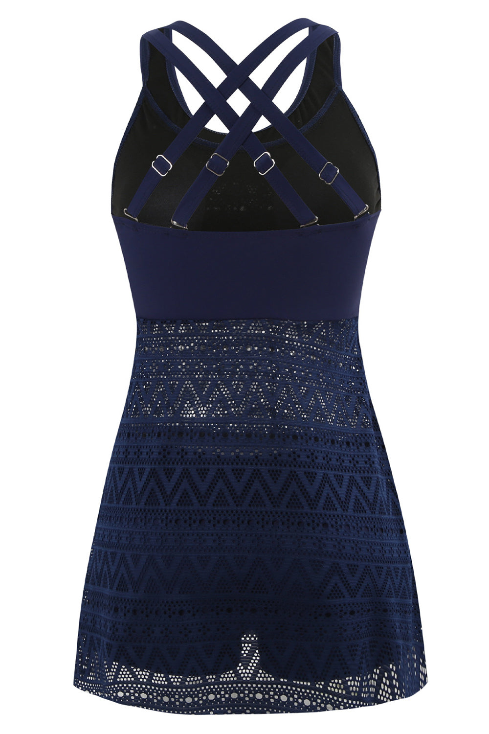 Jewel Neck Black One Piece Swimsuit con pantalones cortos