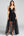 Vestido de corbata negra con volantes y tirantes finos de una línea con abertura