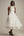 Vestido de cóctel de verano midi blanco con lunares blancos y escote en V profundo negro con abertura