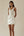 Vestido de graduación blanco ajustado con hombros descubiertos y lazo