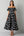 Vestido largo de lunares blancos con cuello redondo y cuello redondo negro