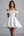 Mini vestido de graduación blanco con volantes fuera de hombro