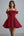 Vestido de fiesta plisado con escote en V y manga corta en rojo oscuro