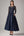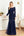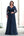 Vestido Largo Madre de la Novia con Manga Corta con Cuello Barco Azul Marino