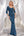 Vestido de novia azul brillante con escote en V y manga larga