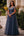 Encaje evasé azul marino y manga larga de gasa Vestido largo Madre del Birde