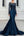Sirena azul real con hombros fruncidos largo madre de la novia vestido