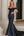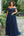 Vestido largo de satén sirena con escote en V azul marino de la madre de la novia