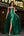 Vestido de fiesta brillante verde oscuro con hombros descubiertos y abertura