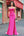 Vestido de fiesta sin tirantes metálico fucsia brillante con abertura