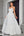 Vestido largo de fiesta de boda con mangas acampanadas de encaje con cuello en V blanco