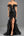 Vestido formal largo de terciopelo sin tirantes negro con lazos brillantes con abertura alta (no guantes)